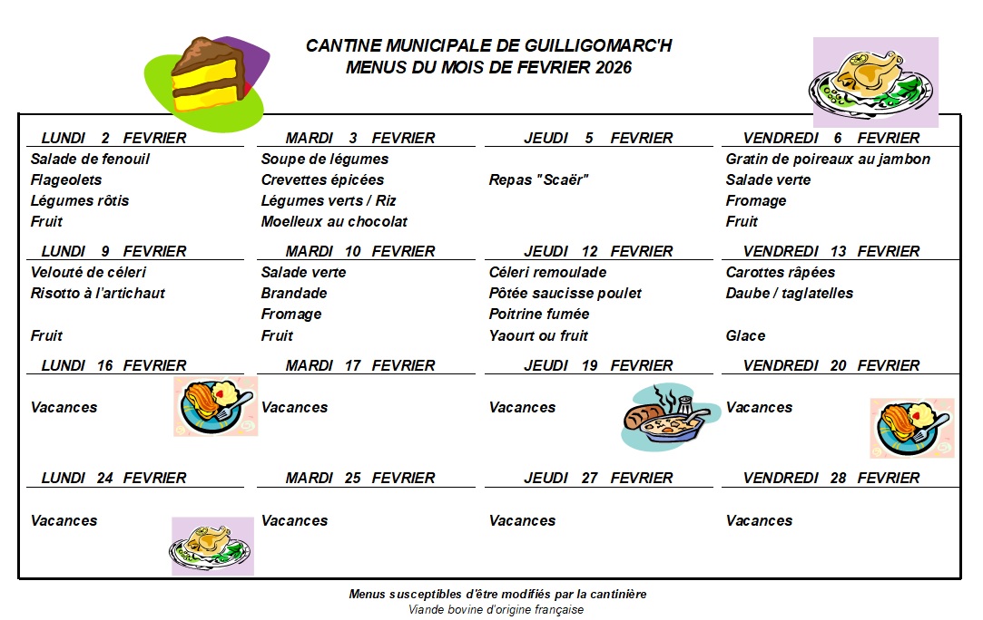 Menu de la cantine